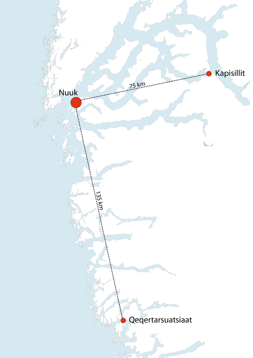 Kapisillit Nuummit 75 kilometerit missiliorlugit kangisinnerusumi inissisimavoq. Aallaqqaataani nunaqarfiup nuuata tungaani maninnersanmi nunaqarfeqarpoq. Tassaanngaanniit kingorna nunaqarfik kujammut kimmut alliartorpoq.