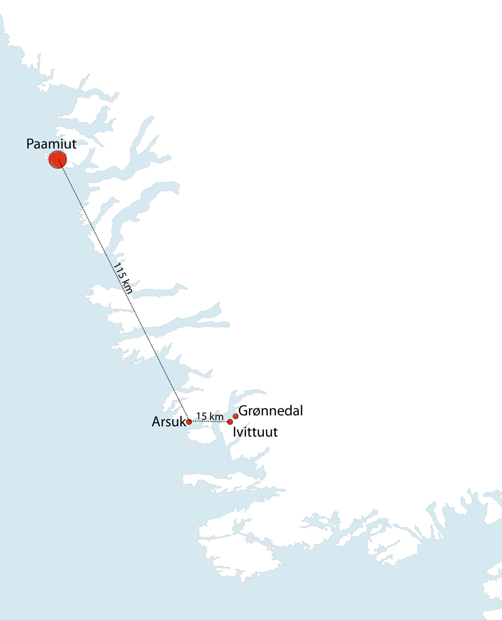 Kommunip immikkoortuata kitaani kujammut sineriaani Paamiut Arsuullu kangerlua (Arsuk, Ivittuut aamma Kangilinnguit) ataatsimoortinneqarput. Paamiut 2011-mi 1.500-it missaannik inoqarpoq, Arsummi 95-it, piffissamilu Ivittuuniit Kangilinnguaniillu nuuttoqartussaavoq sakkutooqarfik Nuummut nuunneqartussaammat. Arsuk Paamiuniit 115 kilometerinik kujasinnerusumiippoq, sumiiffiillu qimanneqartussat Arsuup kangerluaniillutik, Arsummiit 15-20 kilometerinik ungasinnerusumi.